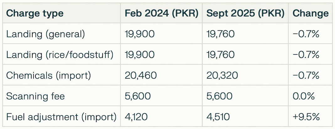 Headline landing charges on some commodities have seen marginal reductions, but fuel adjustment charges and other surcharges have increased. For importers, the combined effect can be substantial, particularly when compounded by delays and the associated demurrage bill.