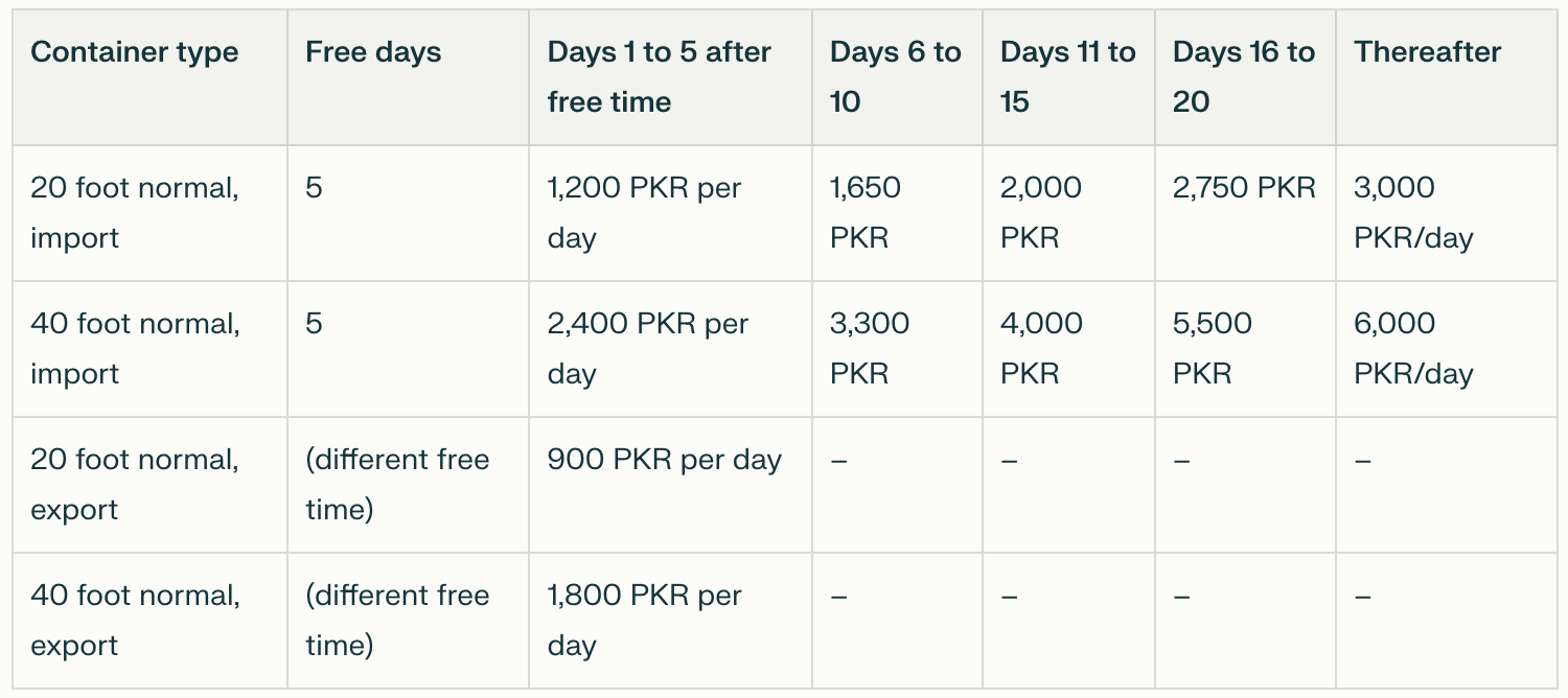 Demurrage rates at QICT rise steeply after a short free period, especially for import containers.