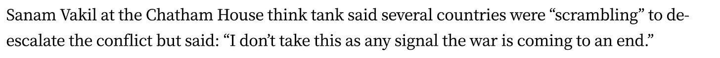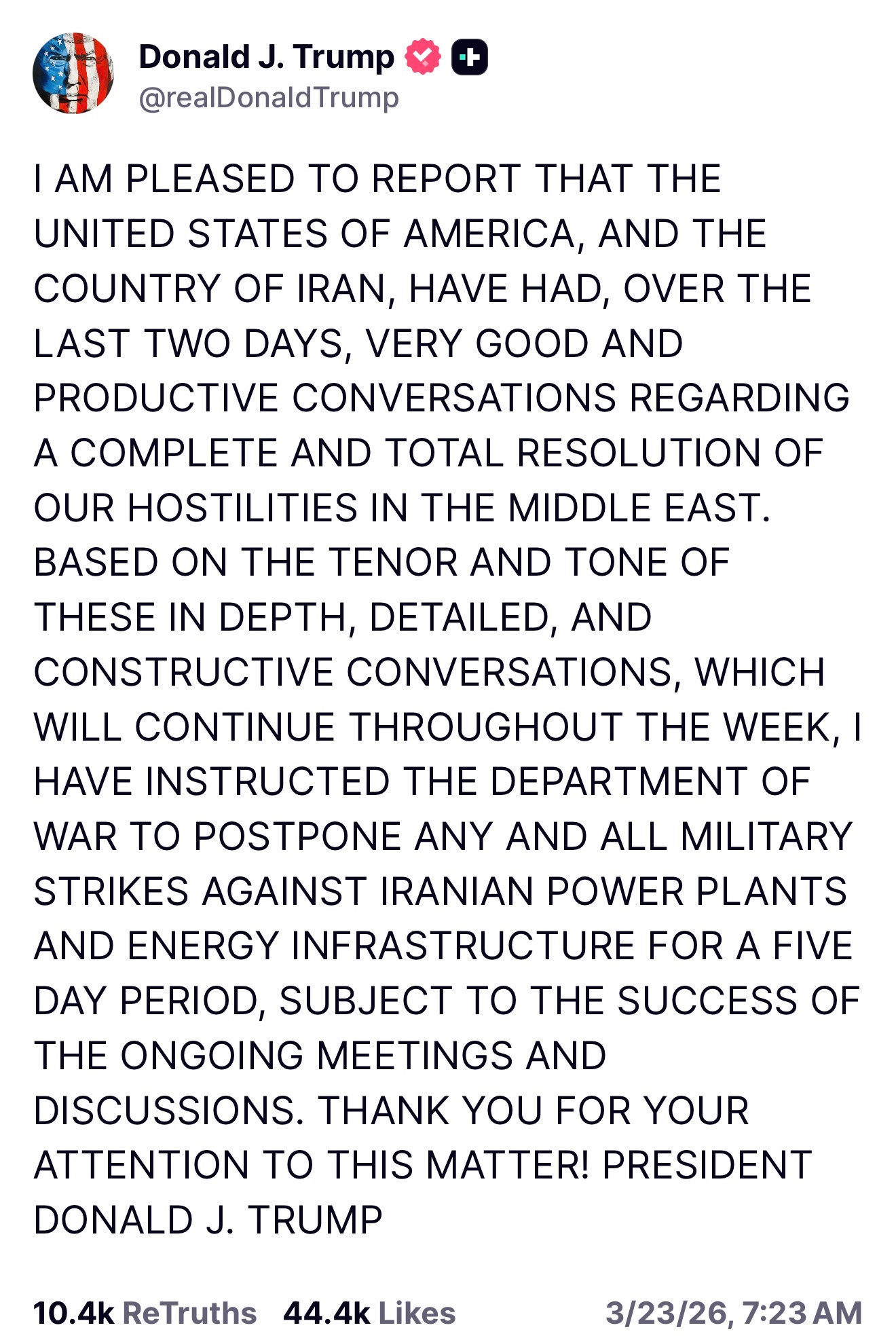 Chatham House analyst Sanam Vakil was direct on Monday: “I don’t take this as any signal the war is coming to an end.” People briefed on the matter described the diplomatic activity as “very early-stage messaging” rather than a formal process. The contacts are indirect, passing through Turkey, Egypt, and Pakistan. Iran has not confirmed any direct engagement. Trump walked back his threat to bomb Iran’s power plants, citing productive negotiations. Oil prices dropped. The S&P recovered. That sequence does not require a peace process. It requires a pause long enough to calm the markets.
