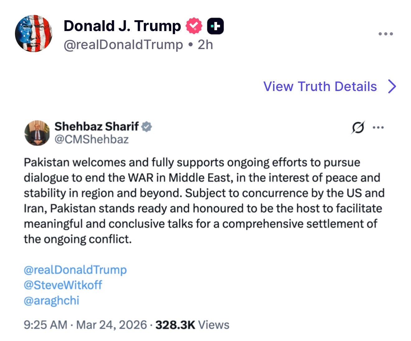 The third reason is internal. An estimated 15 to 20 percent of Pakistan’s population is Shia. When Khamenei was killed on February 28, protests erupted across the country. On March 1, protesters attempted to storm the US Consulate in Karachi. US Marine security guards opened fire. At least ten people were killed and more than sixty injured. At least 23 protesters died in clashes across Pakistan in the first week of the war, with a three-day curfew imposed in Gilgit-Baltistan. On March 20, Munir met Shia clerics in Rawalpindi and warned that “violence in Pakistan, based on incidents taking place in another country, will not be tolerated.” He is managing a domestic sectarian pressure that every additional week of war makes harder to contain. A Pakistan that ends the war is a Pakistan that does not face that pressure indefinitely.